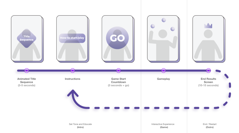 First I identified and defined the different components that make up a multiplayer interactive experience. This gave us a strong foundation to build off of, both during the concepting and prototyping phases.